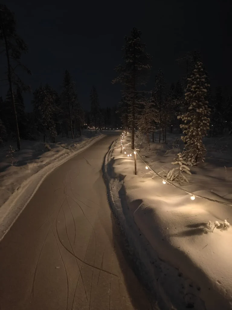 La piste, balisée par des bandes LED haute visibilité et équipée d’une signalisation dynamique, transforme la nuit polaire en un véritable théâtre de lumière, garantissant sécurité et immersion même lorsque les températures chutent bien en dessous de zéro.