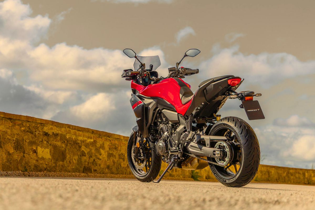 Pour 2025, Yamaha revoit en profondeur la partie-cycle de la TRACER 7 et de la TRACER 7 GT. Les deux modèles adoptent un bras oscillant rallongé de 40 mm par rapport à la génération précédente, visant à améliorer la stabilité, notamment en courbe rapide ou en charge. Le châssis, toujours de type diamant en acier, gagne en rigidité grâce à des ajustements structurels ciblés.