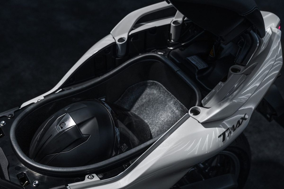 Conscient des besoins des citadins, Yamaha a doté le TMAX 2025 d’un coffre sous la selle capable d’accueillir un casque intégral ou deux casques jet, selon leur taille et leur forme.